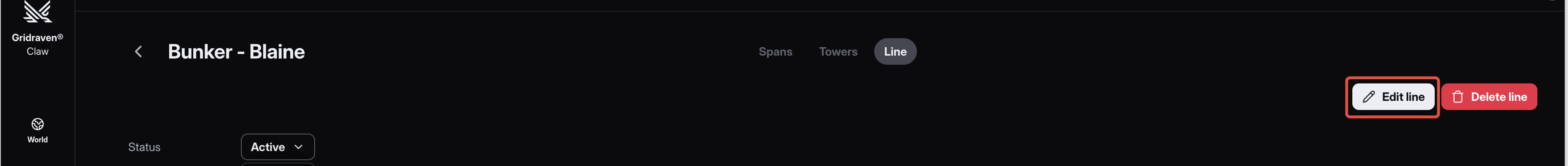 - Shows line metadata and allows editing line status (Active/Inactive) via the Status field