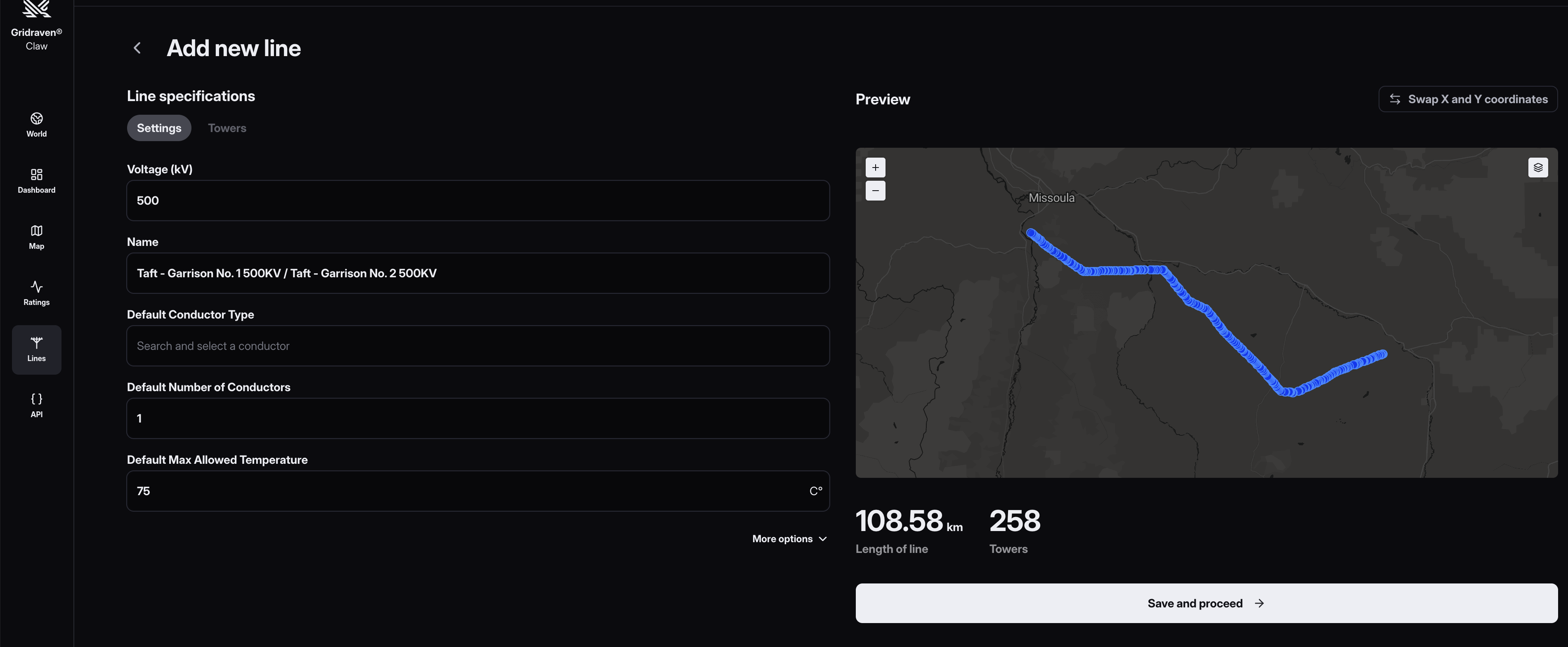 Fill/change line specification and click on Save and proceed.