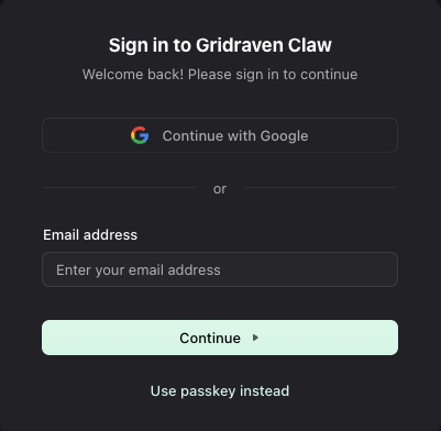 - Click the "Sign up to Gridraven Claw" button