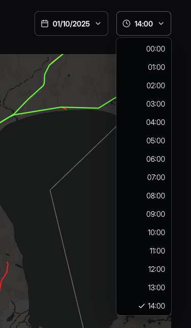 - The map view has the same functionalities described in section 2.6 (e.g selecting timestamp, choosing forecast parameters), but everything on this map is focused on span level (each span has its own line ratings).