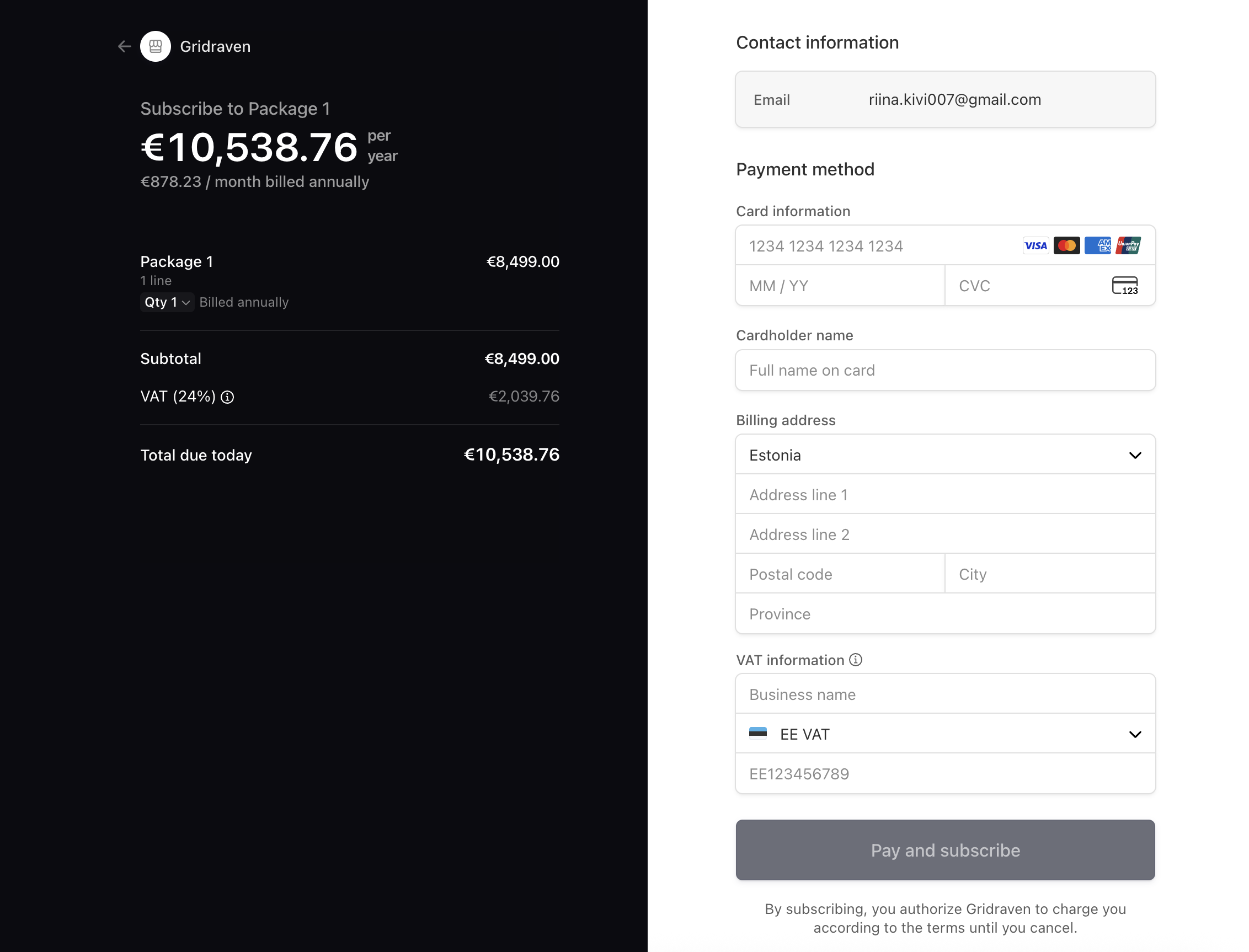 - Click the "Pay an subscribe" to apply the changes. You will receive a confirmation email, and the new package will take effect immediately.